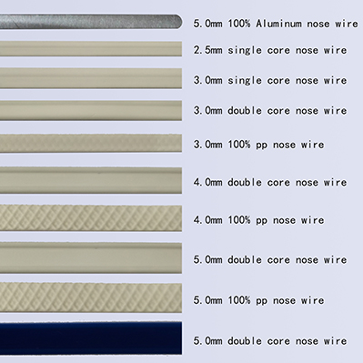സിംഗിൾ കോർ മൂക്ക് വയർ 0.45 / 0.8 മിമി 0.45 മിമി / 0.5 എംഎം 0.45 എംഎം / 0.5 എംഎം ഇരുമ്പ് വയർ, പിപി സംയുക്തം എന്നിവ ഉൾക്കൊള്ളുന്നു. ആന്തരിക ഇരുമ്പ് വയർ കാരണം, ഇതിന് മികച്ച ഫിക്സേഷൻ ഇഫക്റ്റ് ഉണ്ട്.